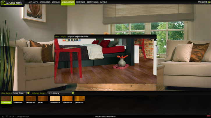 Sitenin tasarım ve uygulama aşamalarında firma ürünlerinin ve ürün detaylarının kullanıcılar tarafından net bir şekilde görülebilmesi önceliğimizdi. Uygulamalar başlığı altına ziyaretçilerin istediği bir ürünü evdeki herhangi bir odanın zeminine eş zamanlı kaplayabilecekleri bir uygulama geliştirdik.